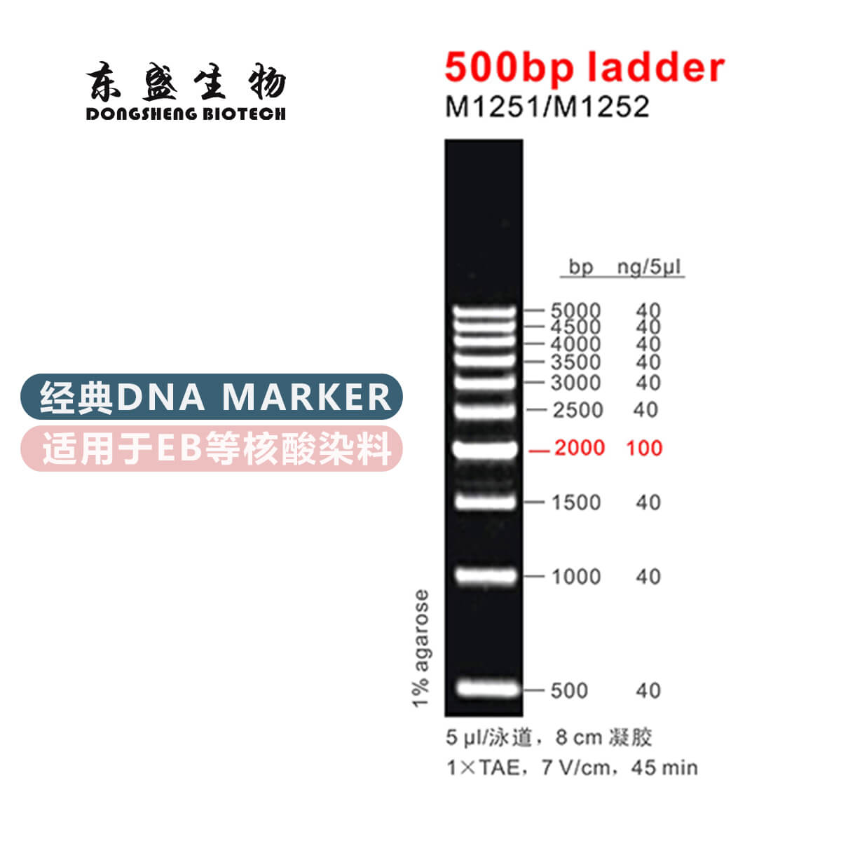 500bp ladder已預混上樣緩沖液,可直接進(jìn)行電泳分析。