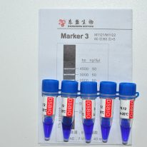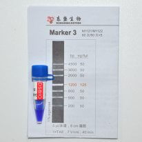 Marker 3是由7條雙鏈線(xiàn)狀DNA片段混合而成的DNA分子量標準(DNA Marker/ DNA Ladder),適用于確定200?bp至4.5?kb的線(xiàn)性雙鏈DNA片段大小,指示帶為1200 bp,便于電泳后觀(guān)察。每條帶都通過(guò)嚴格的物理定量,可用于測定目的片段的大小和含量。