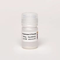 蛋白酶?K?是一種非特異性的蛋白內切酶,可以切割脂肪族氨基酸、疏水性氨基酸和芳香族氨基酸羧基端連接的酯鍵和肽鍵。分子量?大小為?29.3 kDa(單體)。該酶屬于絲氨酸類(lèi)蛋白酶,其水解的最小多肽是四肽分子。?蛋白酶?K?的推薦工作濃度為?0.05-1 mg/ml。0.2%SDS?或?1-4 M?尿素可刺激該酶的活性。?Ca2+可以保護蛋白酶?K?不會(huì )自我降解、增加蛋白酶?K?的熱穩定性、調節蛋白酶?K?的底物結合位點(diǎn)。?蛋白酶?K?在寬?pH?值(4.0-12.5)范圍內保持穩定,最佳?pH?值范圍是?7.5-8.0。?
