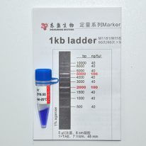 1kb Ladder是由10條雙鏈線(xiàn)狀DNA片段混合而成的DNA分子量標準(DNA Marker/ DNA Ladder),適用于確定500?bp至10?kb的線(xiàn)性雙鏈DNA片段大小,指示帶為2000 bp和5000 bp,便于電泳后觀(guān)察。每條帶都通過(guò)嚴格的物理定量可用于測定目的片段的大小和含量。